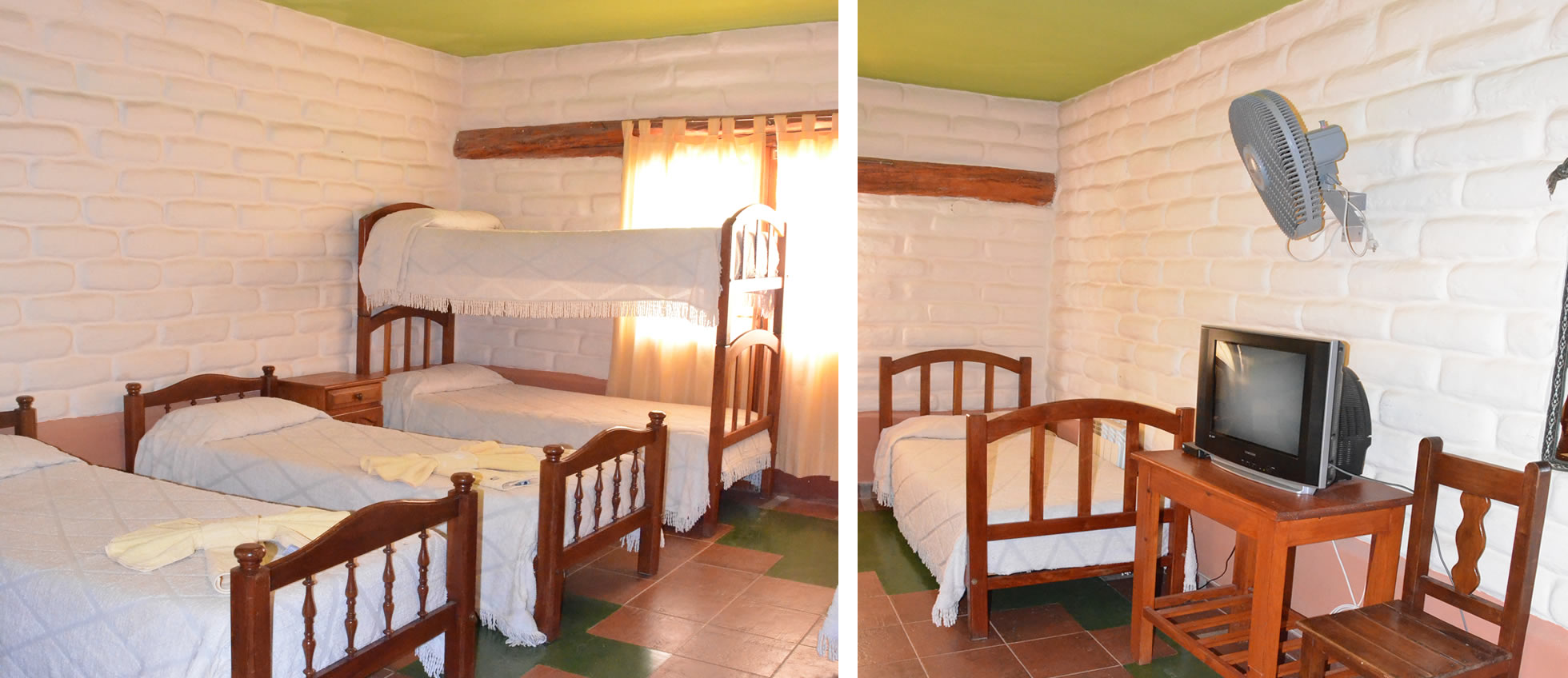 Las habitaciones cuádruples tienen cuatro camas individuales o una cama grande con cuchetas, son luminosas y tranquilas para garantizar el descanso.